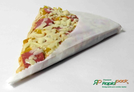 El porta pizza Empaque biodegrabale con bolsillo ergonómico que se acomoda tanto al producto facilmente Puede usarse inclinándolo sin ningún riesgo.